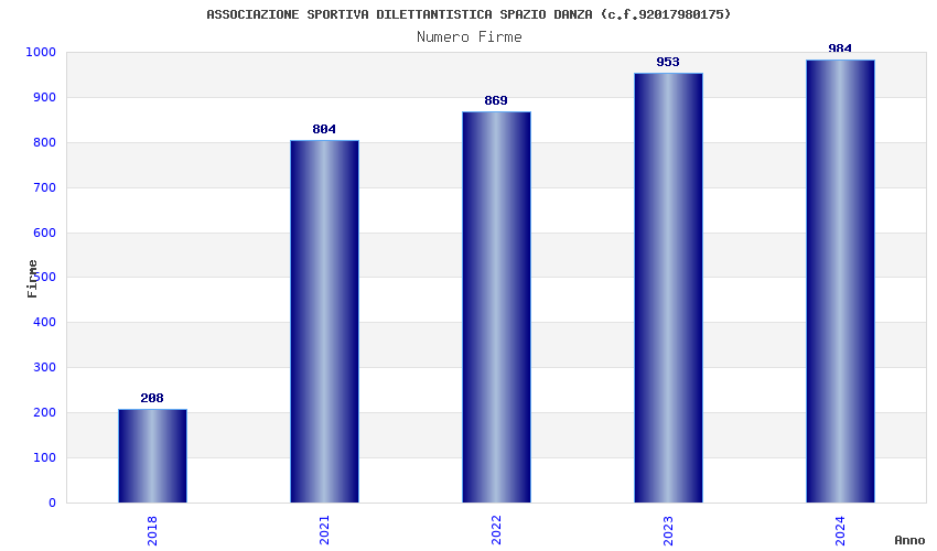 | Anno | Firme | Importi | Media | Naz. | Reg. | Prov. | Comu. |