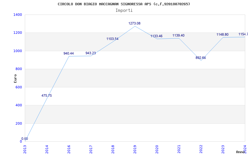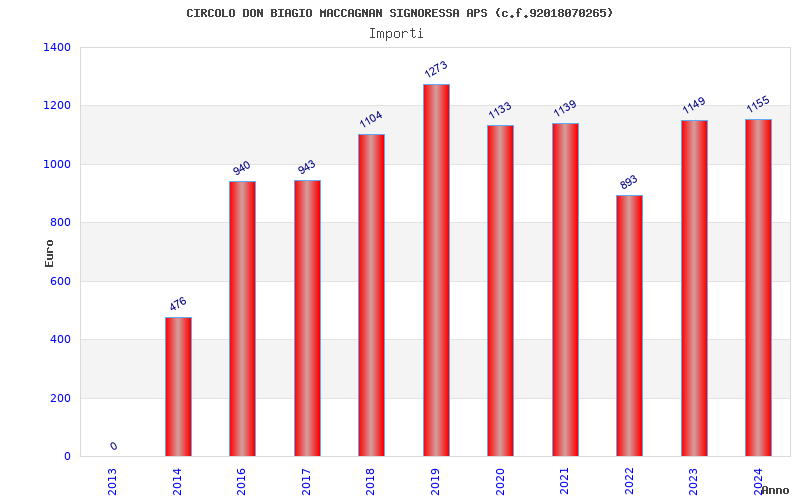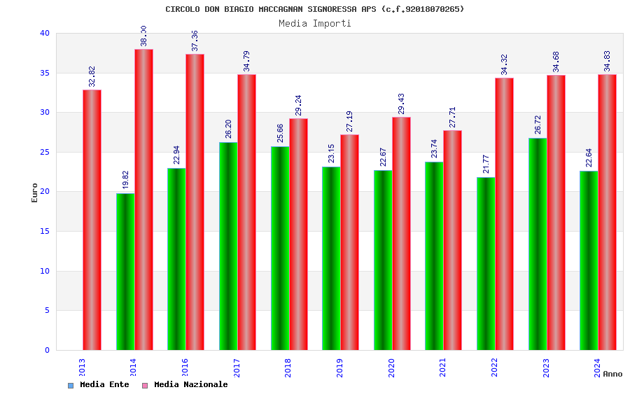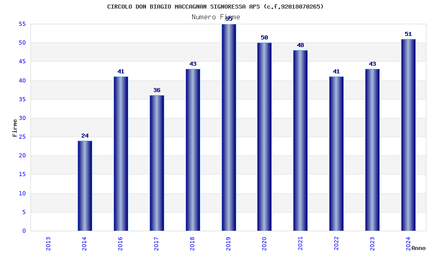 | Anno | Firme | Importi | Media | Naz. | Reg. | Prov. | Comu. |