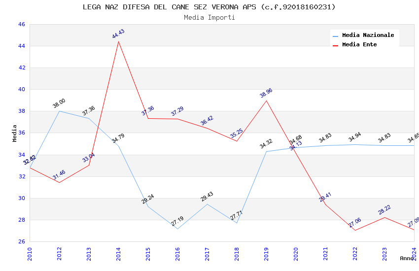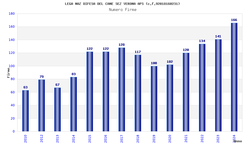 | Anno | Firme | Importi | Media | Naz. | Reg. | Prov. | Comu. |