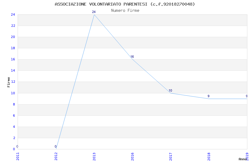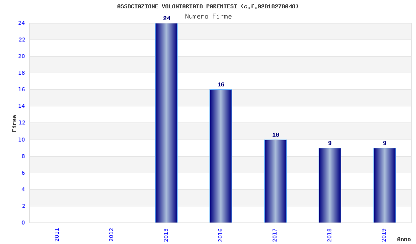 | Anno | Firme | Importi | Media | Naz. | Reg. | Prov. | Comu. |