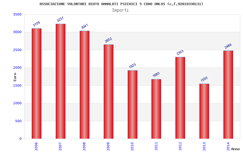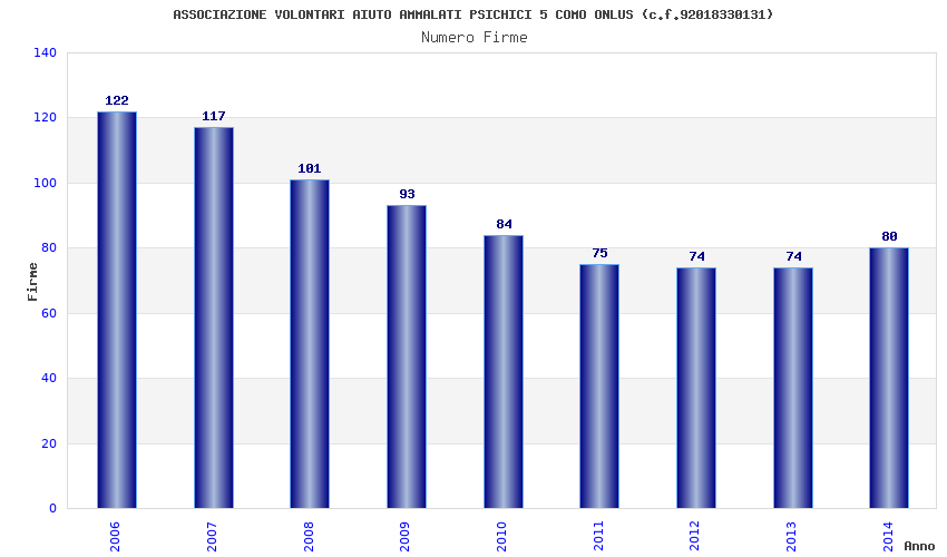 | Anno | Firme | Importi | Media | Naz. | Reg. | Prov. | Comu. |