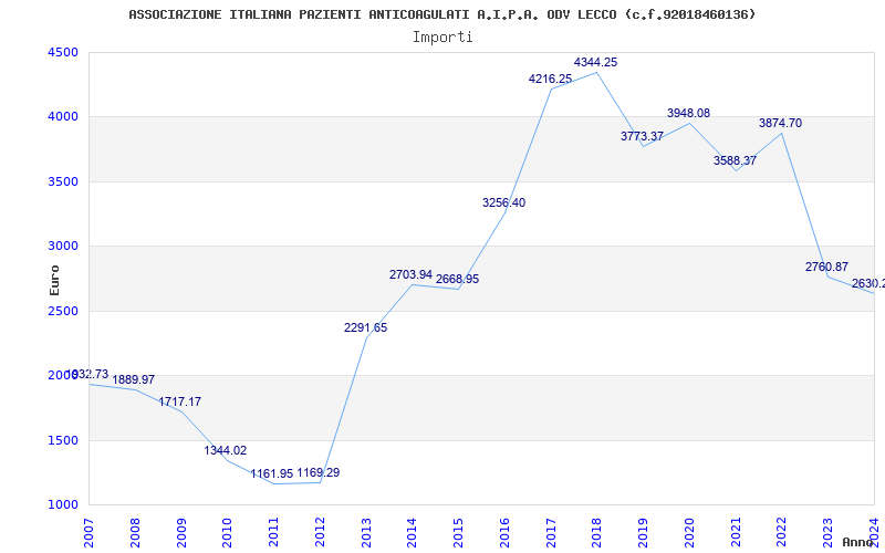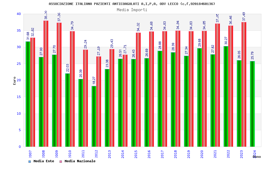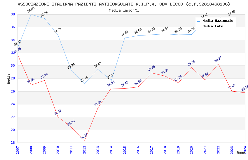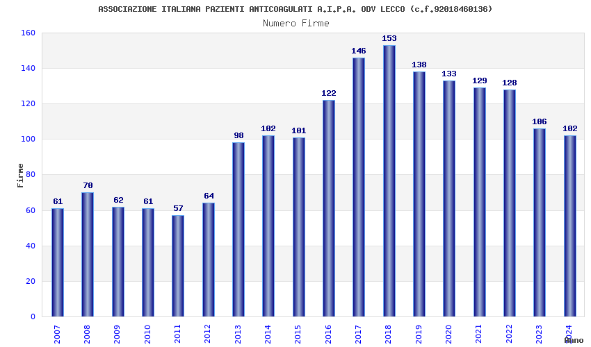 | Anno | Firme | Importi | Media | Naz. | Reg. | Prov. | Comu. |