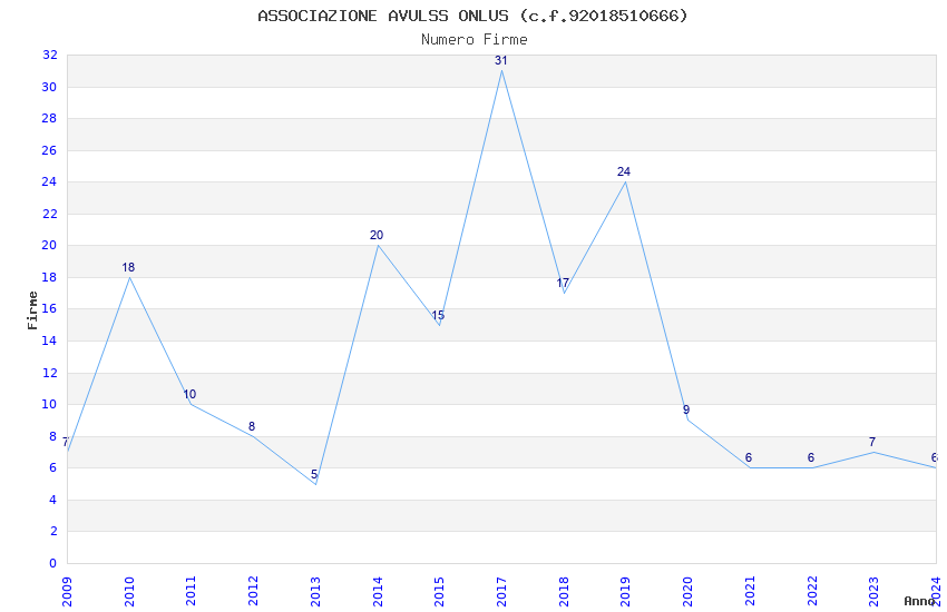 | 2017 | 31 | 761,59 | 24,57 | 38.467 | 707 | 198 | 18 |