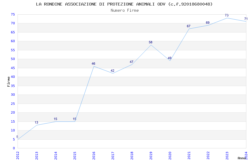 | 2023 | 73 | 2.041,64 | 27,97 | 23.277 | 1.745 | 269 | 15 |