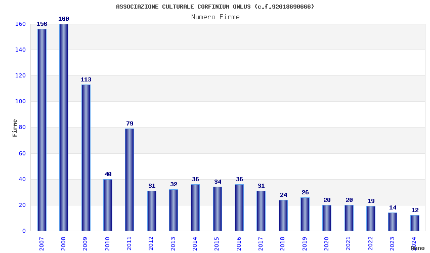 | Anno | Firme | Importi | Media | Naz. | Reg. | Prov. | Comu. |
