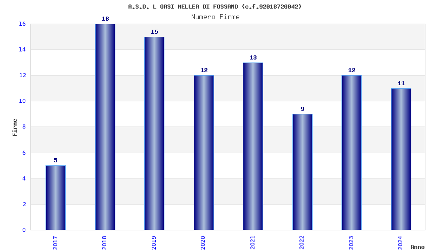 | Anno | Firme | Importi | Media | Naz. | Reg. | Prov. | Comu. |
