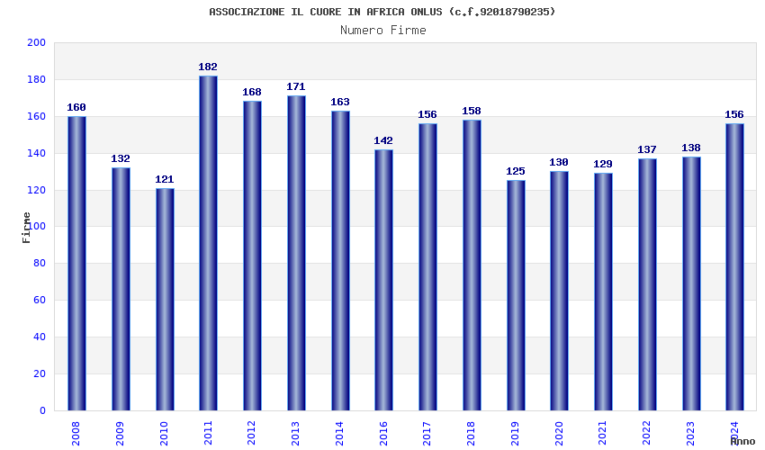 | Anno | Firme | Importi | Media | Naz. | Reg. | Prov. | Comu. |