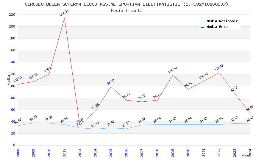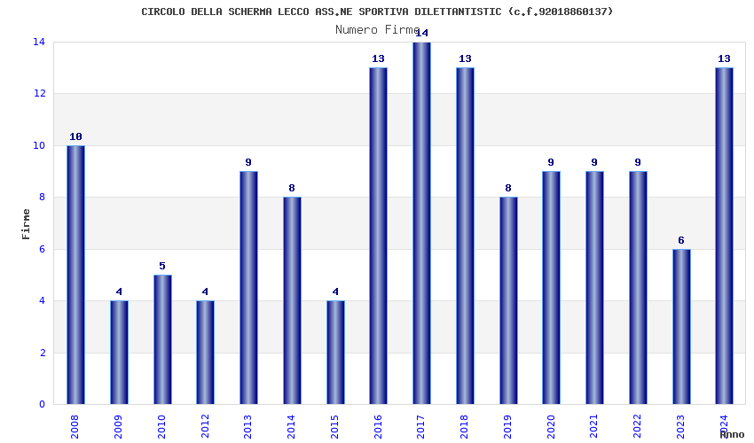 | Anno | Firme | Importi | Media | Naz. | Reg. | Prov. | Comu. |
