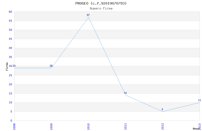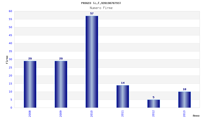| Anno | Firme | Importi | Media | Naz. | Reg. | Prov. | Comu. |