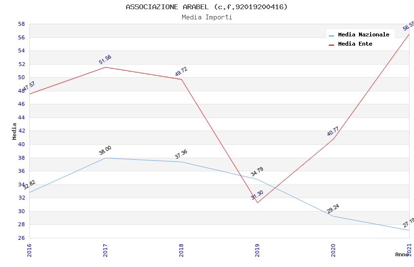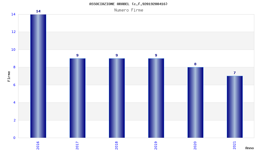 | Anno | Firme | Importi | Media | Naz. | Reg. | Prov. | Comu. |