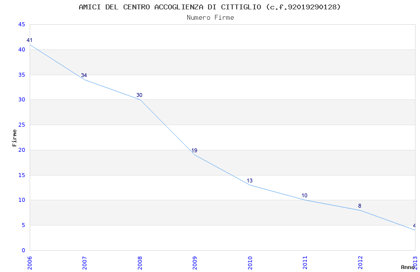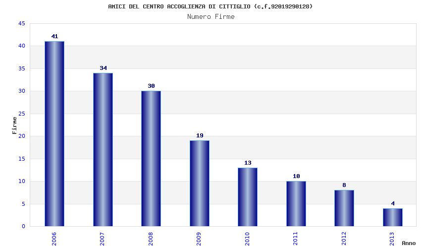 | Anno | Firme | Importi | Media | Naz. | Reg. | Prov. | Comu. |