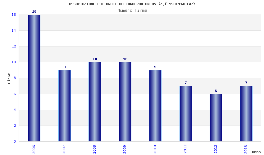| Anno | Firme | Importi | Media | Naz. | Reg. | Prov. | Comu. |
