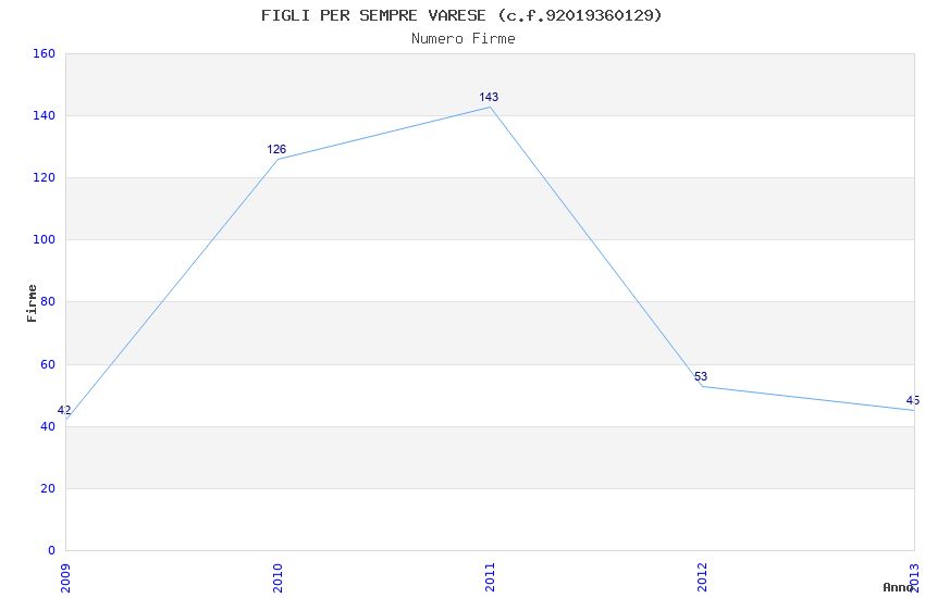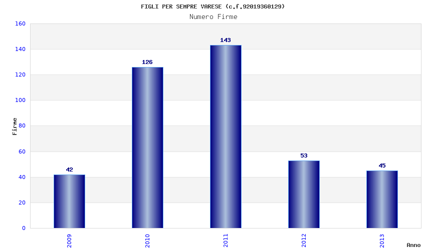 | Anno | Firme | Importi | Media | Naz. | Reg. | Prov. | Comu. |