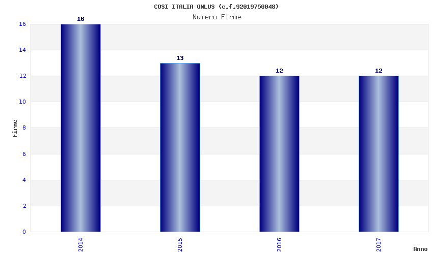 | Anno | Firme | Importi | Media | Naz. | Reg. | Prov. | Comu. |