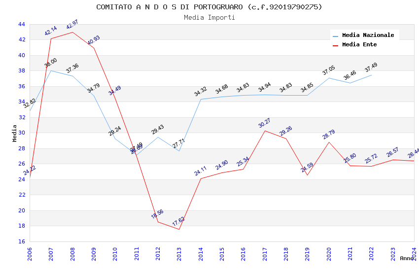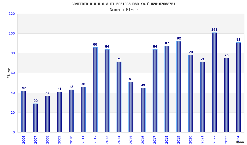 | Anno | Firme | Importi | Media | Naz. | Reg. | Prov. | Comu. |