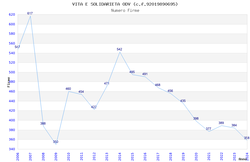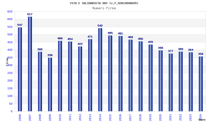 | Anno | Firme | Importi | Media | Naz. | Reg. | Prov. | Comu. |