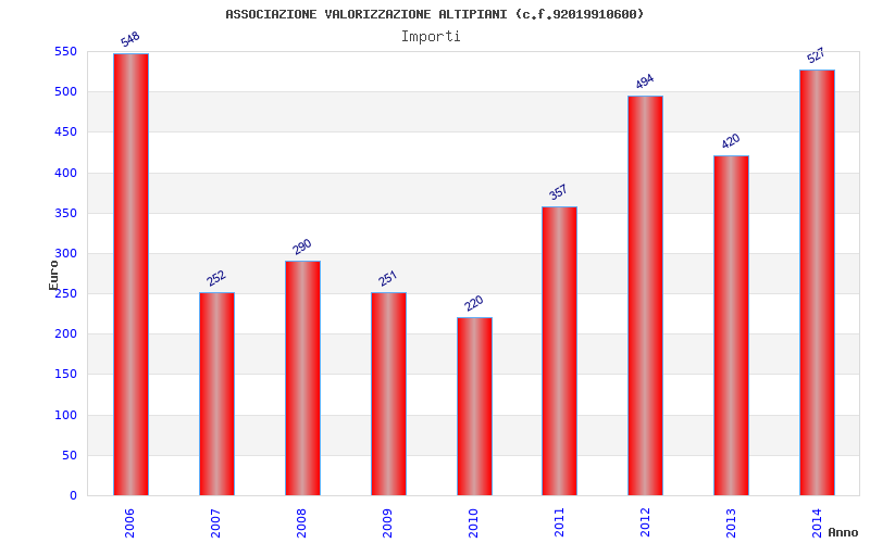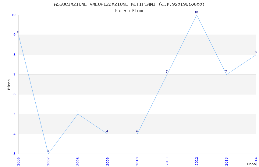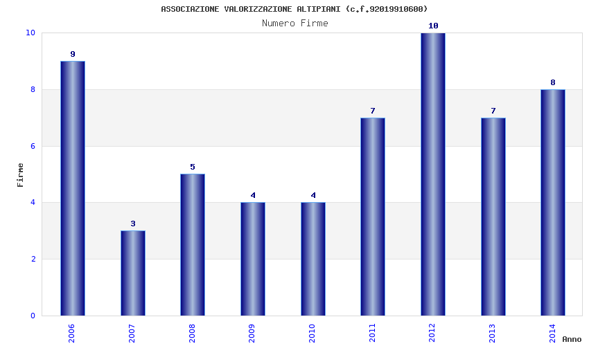 | Anno | Firme | Importi | Media | Naz. | Reg. | Prov. | Comu. |