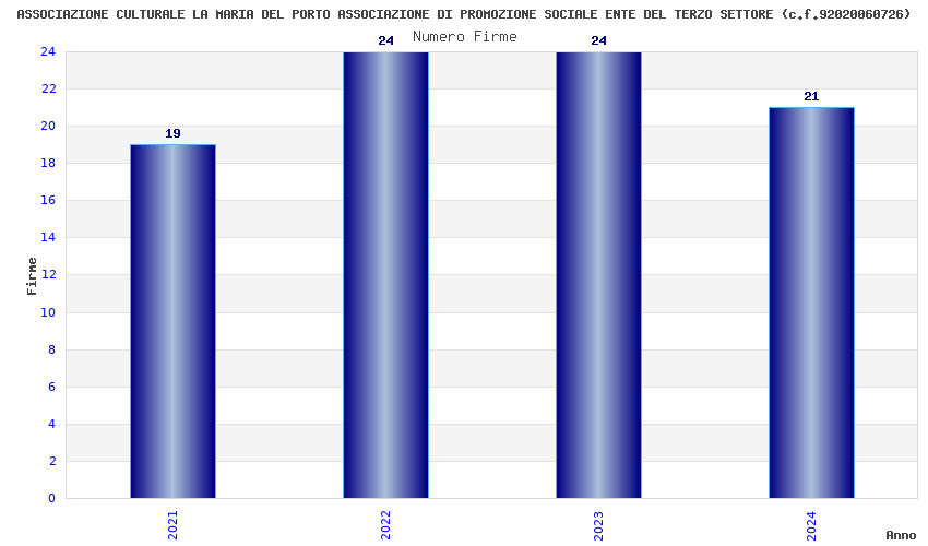 | Anno | Firme | Importi | Media | Naz. | Reg. | Prov. | Comu. |