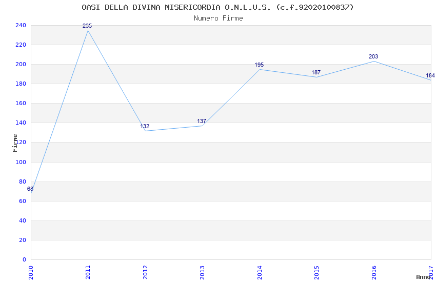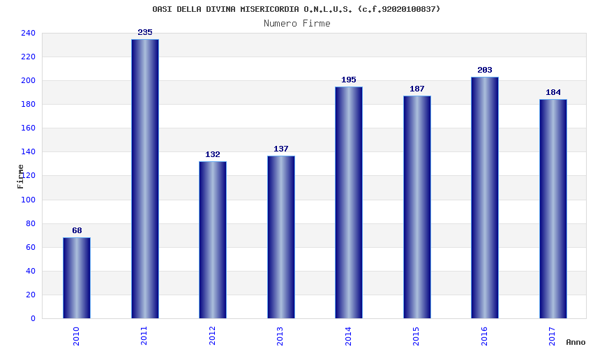 | Anno | Firme | Importi | Media | Naz. | Reg. | Prov. | Comu. |