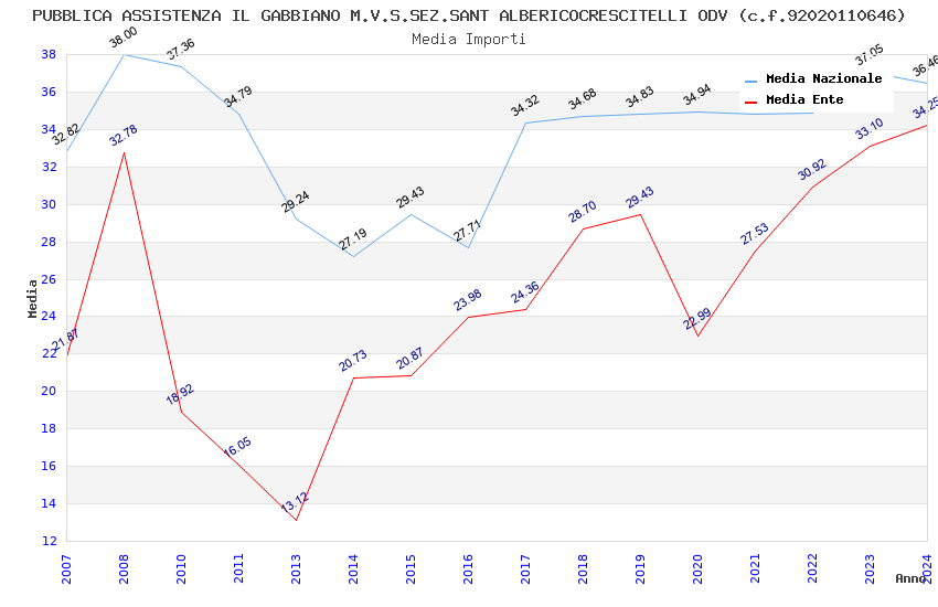| Anno | Firme | Importi | Media | Naz. | Reg. | Prov. | Comu. |