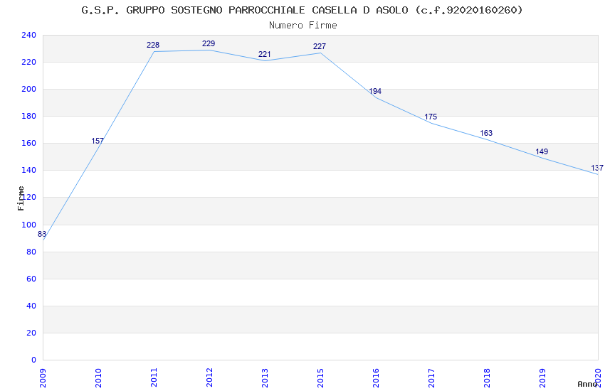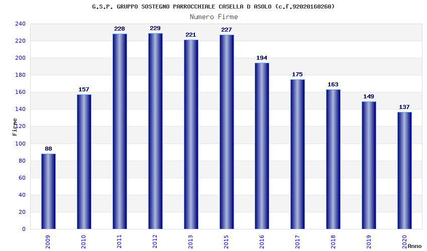 | Anno | Firme | Importi | Media | Naz. | Reg. | Prov. | Comu. |