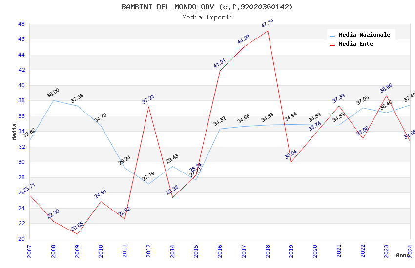 | Anno | Firme | Importi | Media | Naz. | Reg. | Prov. | Comu. |