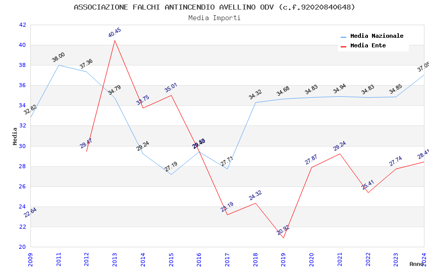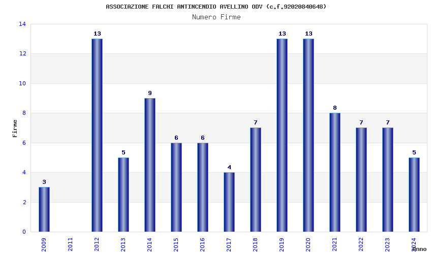 | Anno | Firme | Importi | Media | Naz. | Reg. | Prov. | Comu. |