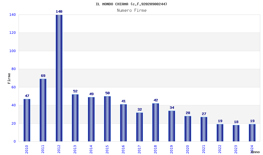 Anno Firme Importi Media Naz. Reg. Prov. Comu.