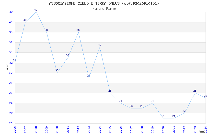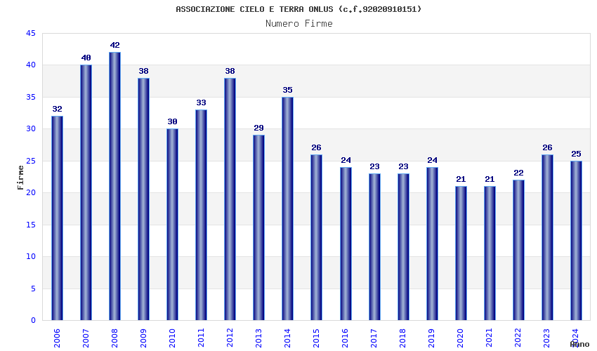 | Anno | Firme | Importi | Media | Naz. | Reg. | Prov. | Comu. |
