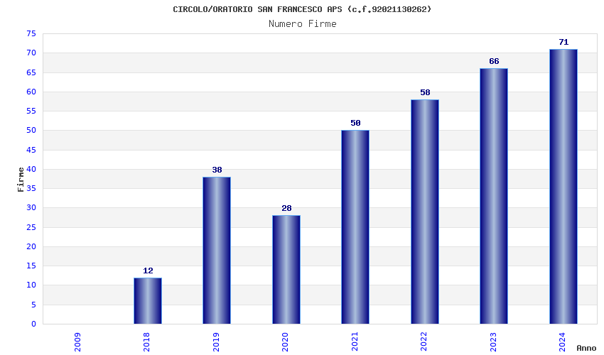| Anno | Firme | Importi | Media | Naz. | Reg. | Prov. | Comu. |