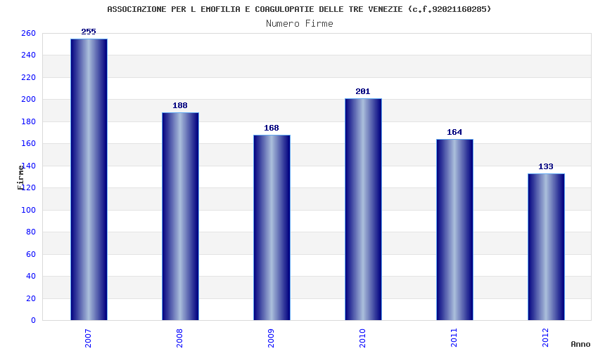 | Anno | Firme | Importi | Media | Naz. | Reg. | Prov. | Comu. |