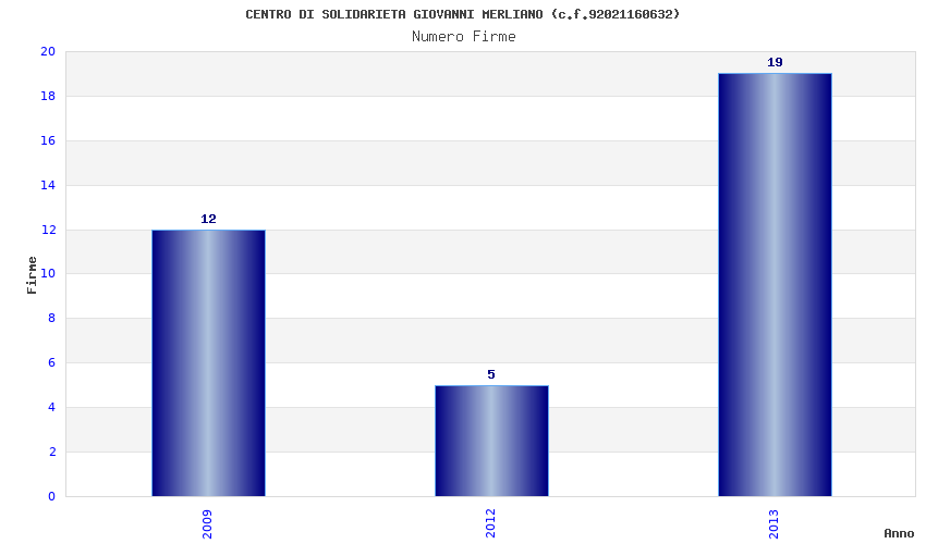 | Anno | Firme | Importi | Media | Naz. | Reg. | Prov. | Comu. |