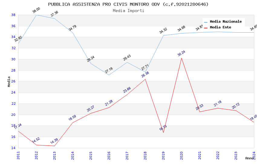 | Anno | Firme | Importi | Media | Naz. | Reg. | Prov. | Comu. |