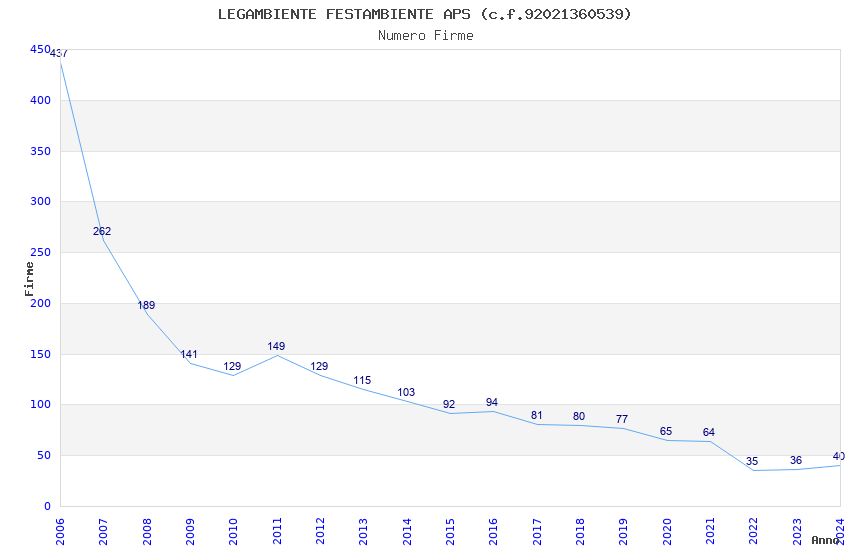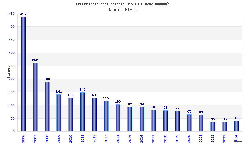 | Anno | Firme | Importi | Media | Naz. | Reg. | Prov. | Comu. |