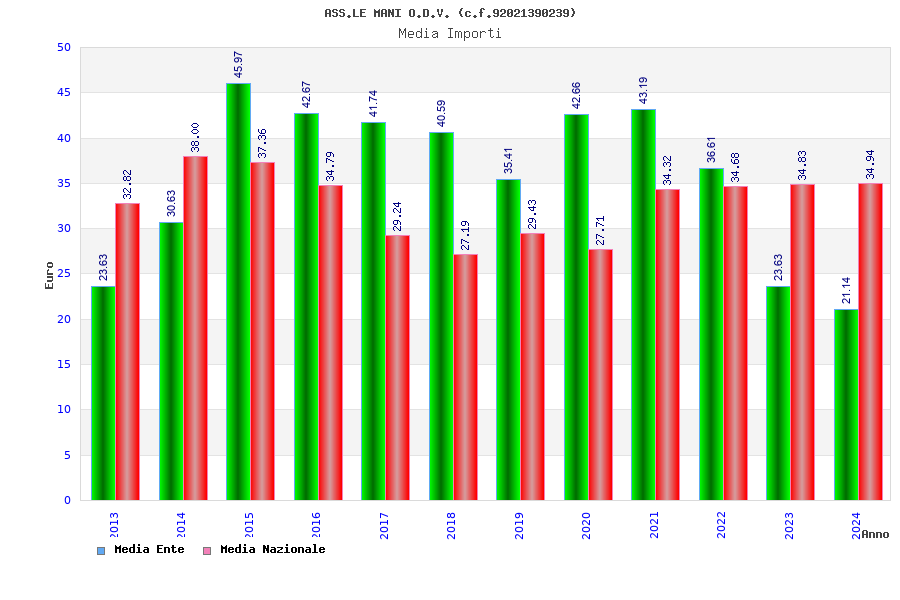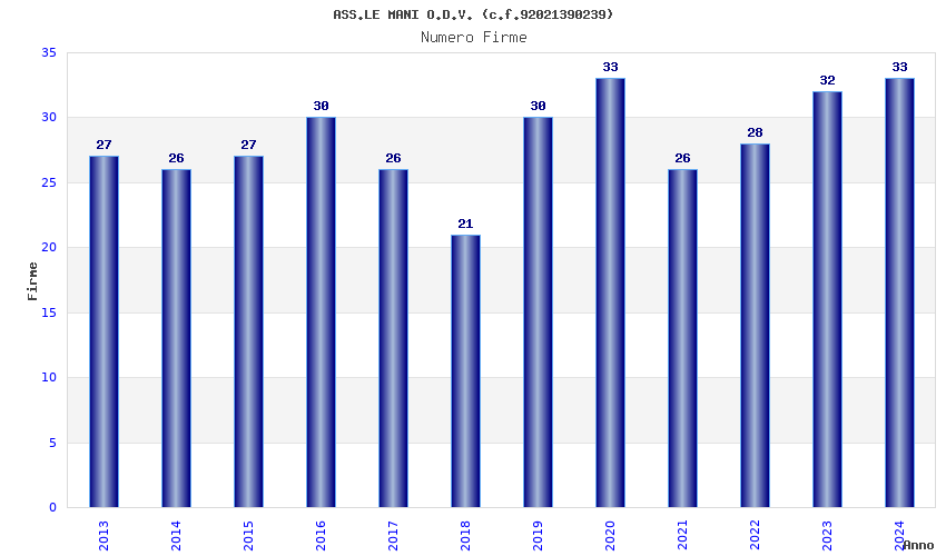 | Anno | Firme | Importi | Media | Naz. | Reg. | Prov. | Comu. |