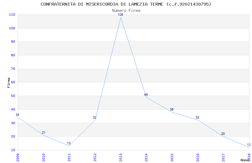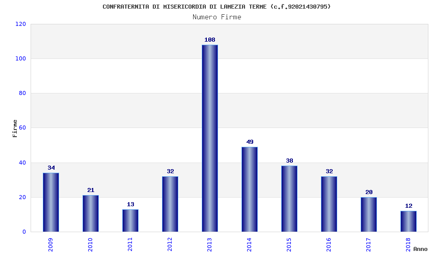 | Anno | Firme | Importi | Media | Naz. | Reg. | Prov. | Comu. |
