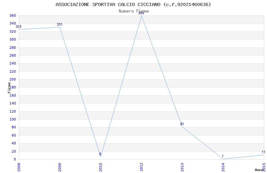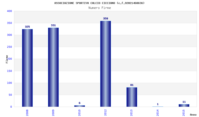 | Anno | Firme | Importi | Media | Naz. | Reg. | Prov. | Comu. |
