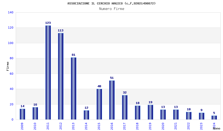 Anno Firme Importi Media Naz. Reg. Prov. Comu.