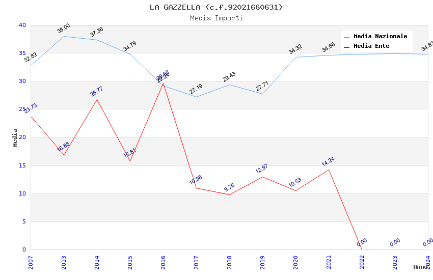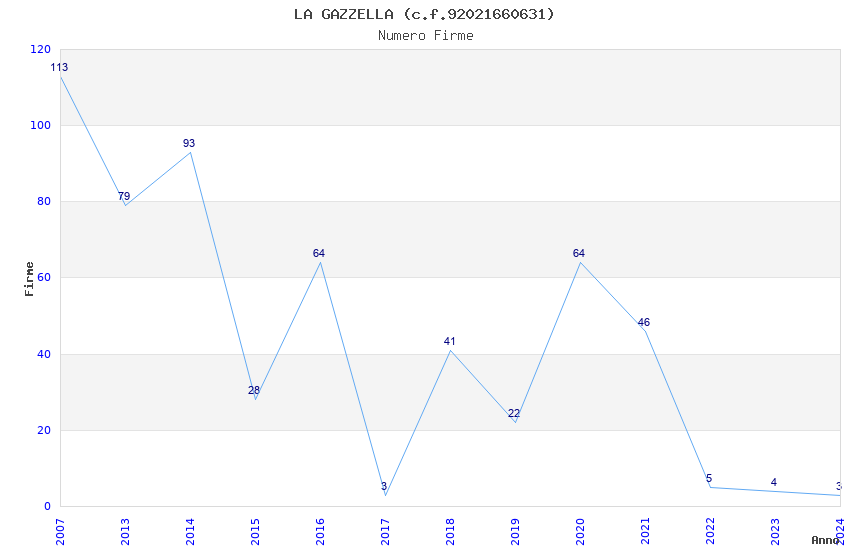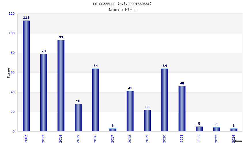 | Anno | Firme | Importi | Media | Naz. | Reg. | Prov. | Comu. |