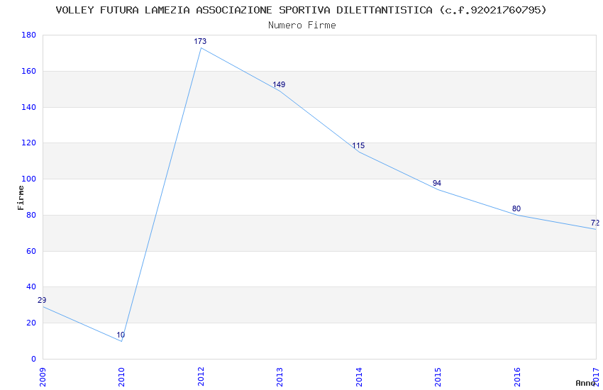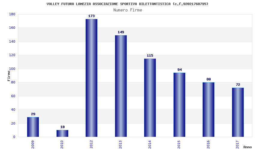 | Anno | Firme | Importi | Media | Naz. | Reg. | Prov. | Comu. |