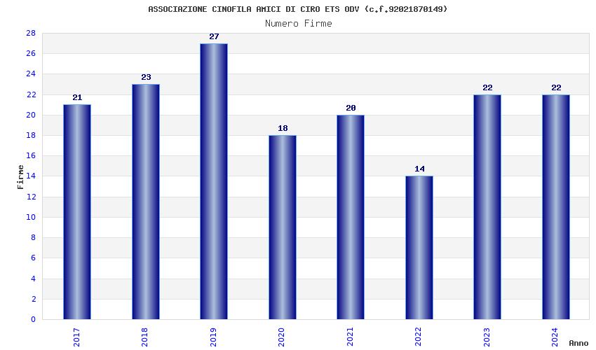 | Anno | Firme | Importi | Media | Naz. | Reg. | Prov. | Comu. |