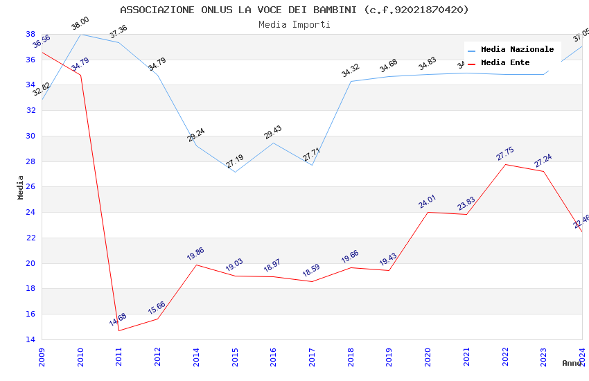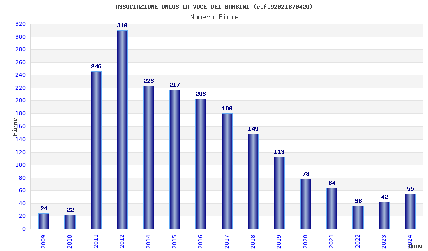 | Anno | Firme | Importi | Media | Naz. | Reg. | Prov. | Comu. |