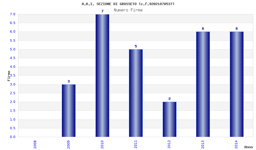 | Anno | Firme | Importi | Media | Naz. | Reg. | Prov. | Comu. |