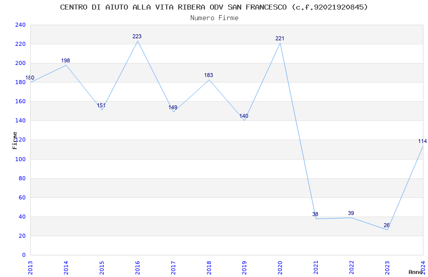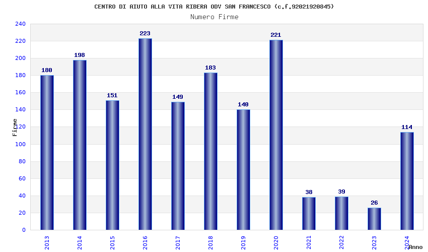 | Anno | Firme | Importi | Media | Naz. | Reg. | Prov. | Comu. |