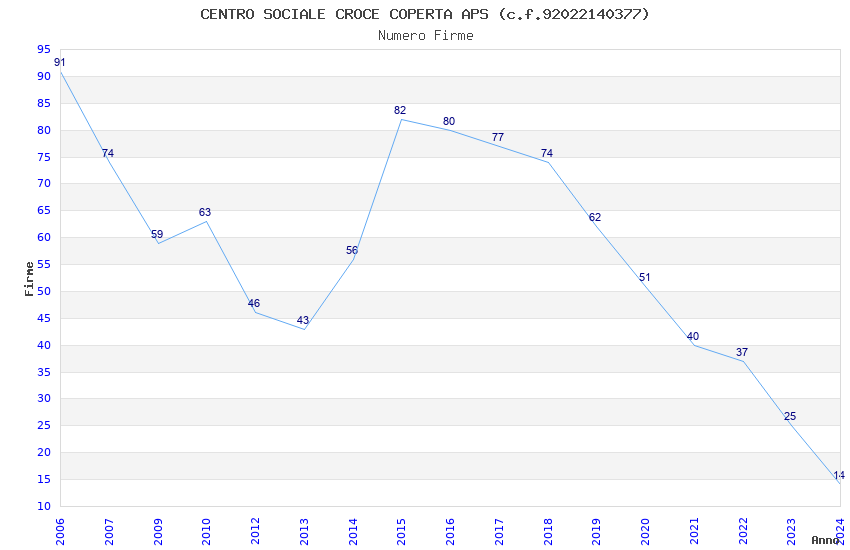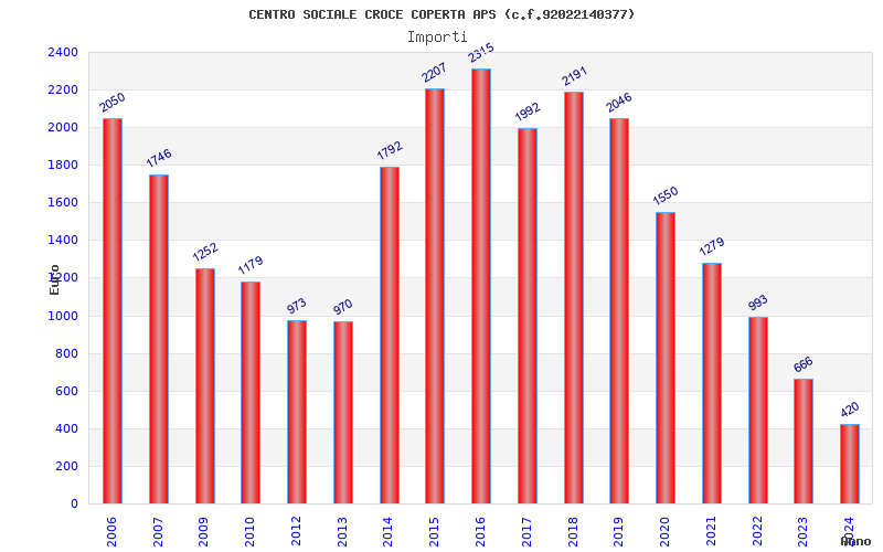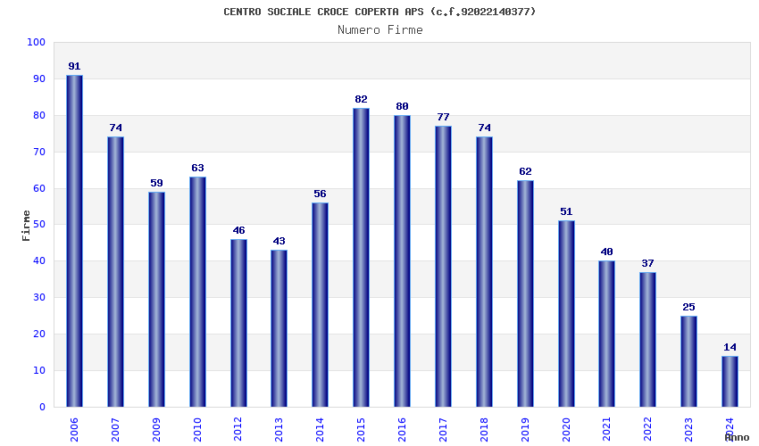 | Anno | Firme | Importi | Media | Naz. | Reg. | Prov. | Comu. |