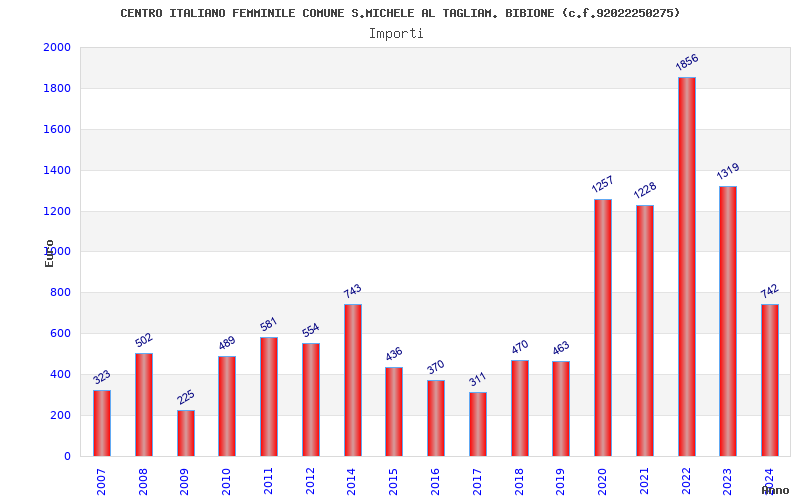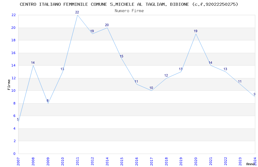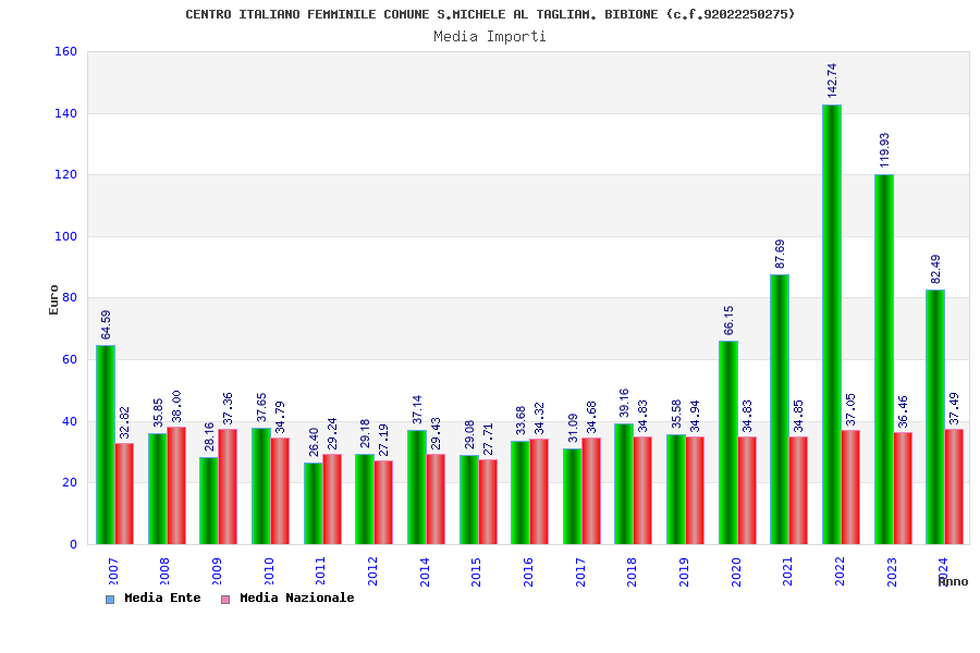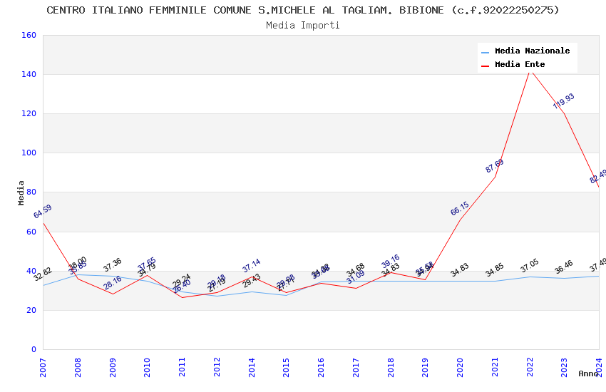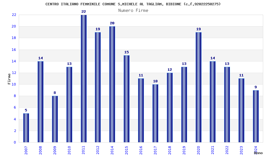 | Anno | Firme | Importi | Media | Naz. | Reg. | Prov. | Comu. |
