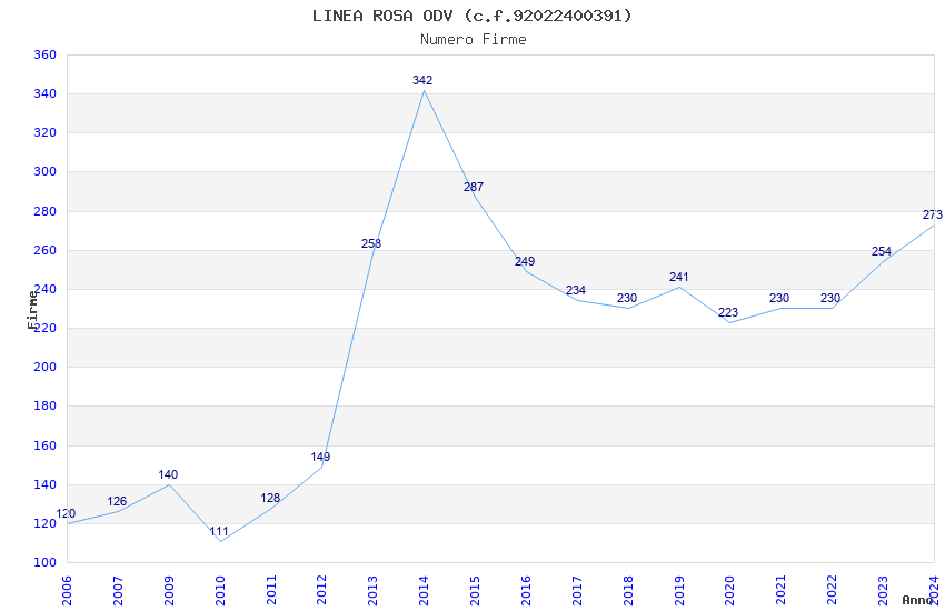 | 2014 | 342 | 8.507,48 | 24,88 | 6.255 | 576 | 36 | 14 |