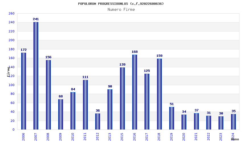 | Anno | Firme | Importi | Media | Naz. | Reg. | Prov. | Comu. |