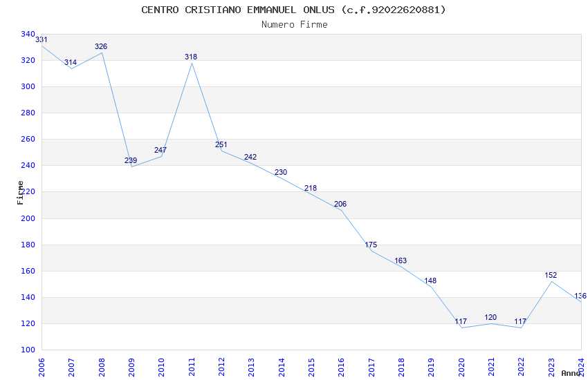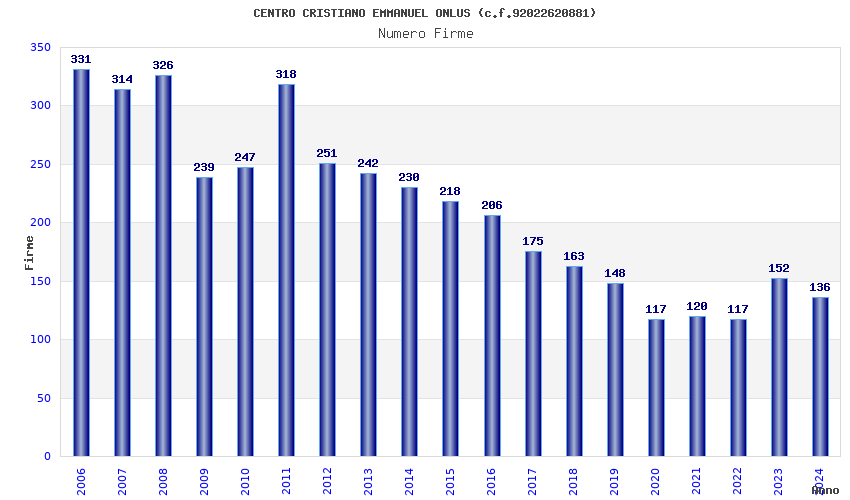 | 2006 | 331 | 5.793,61 | 17,50 | 7.331 | 305 | 24 | 12 |