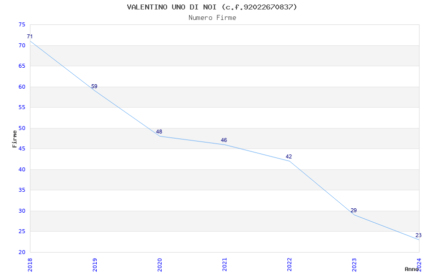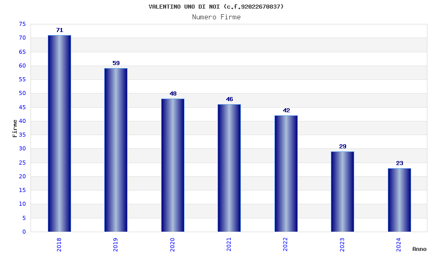 | Anno | Firme | Importi | Media | Naz. | Reg. | Prov. | Comu. |